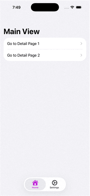 I wrapped my view in a NavigationStack and used .toolbarVisibility(.hidden, for: .tabBar) to navigate while hiding the tab bar. However, this causes an issue: the transition animation becomes stiff and unnatural. I haven’t found a good solution yet.